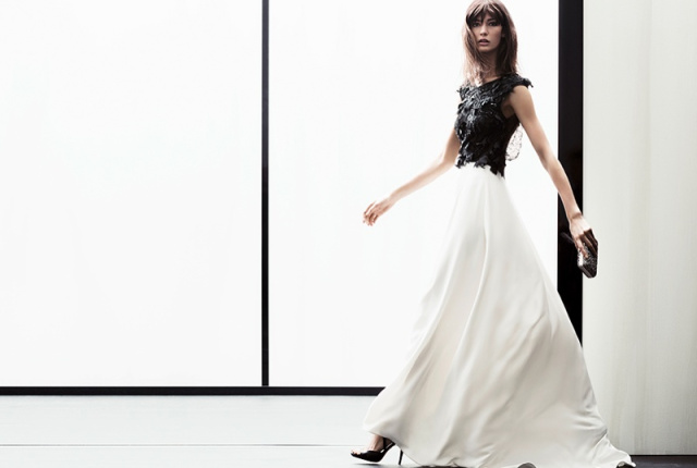 After posing seaside for the brand’s previous advertisements, Kendra Spears goes indoors for the fall 2013 campaign from Escada. The American model poses for Claudia Knoepfel and Stefan Indlekofer in a series of minimal images focusing on the autumn season’s tailored outerwear and feminine dresses. The custom-made set was inspired by modern art as shown by the graphic lines and color-blocking.