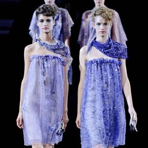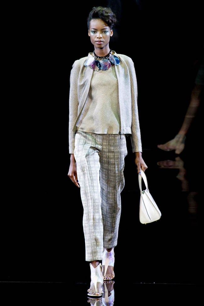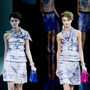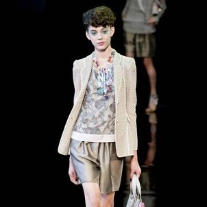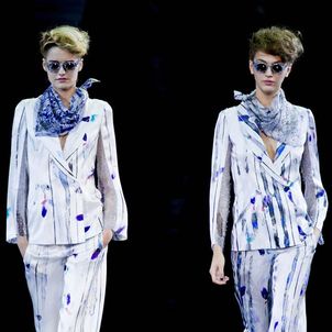 Italy's Giorgio Armani rounded off Milan Fashion Week on Monday, as the fashion retail sector looks to shake off a recession that has forced thousands of businesses to close in the country. Armani showed off a sophisticated business woman on the catwalk with a collection that included grey trouser suits and double-breasted jackets.