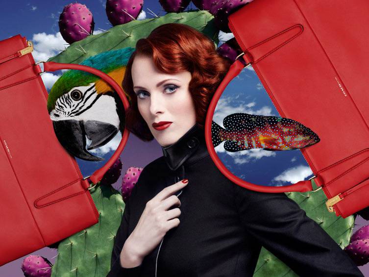 Airport retailer T-Galleria taps Karen Elson for its 2014 campaign featuring a collage of wild animals, blue skies and sea life. Image maker Mat Maitland worked on art direction for the photographs where the British model exudes a calm and cool refinement against the colorful and surreal backdrop. To see more of Karen, check out her recent campaign for Louis Vuitton’s “Spirit of Travel” project.