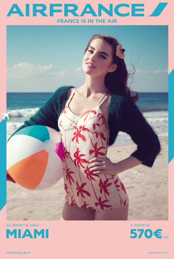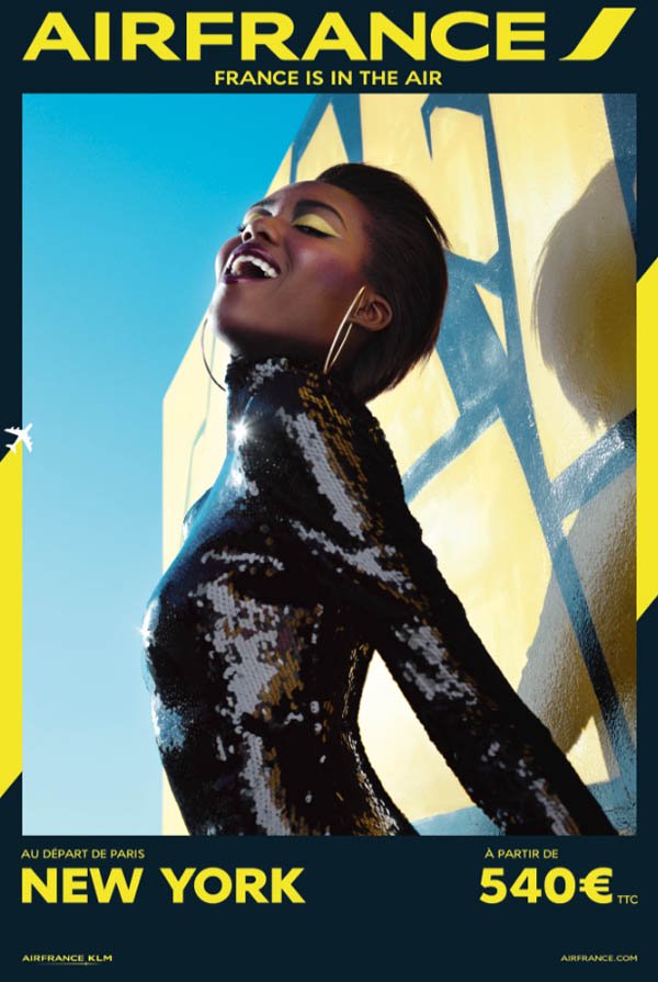 Paying homage to its French heritage, Air France has launched a new campaign featuring a modern take on France. The advertisements photographed by Sofia Sanchez and Mauro Mongiello of Art Dept. Europe have the slogan “Air France, France is in the Air”. The images feature notable fashion models including Ali Michael, Bette Franke, Shanina Shaik and more with a focus on not only France but other notable destinations like Brazil, New York and San Francisco. See more images from the colorful and lively campaign below.