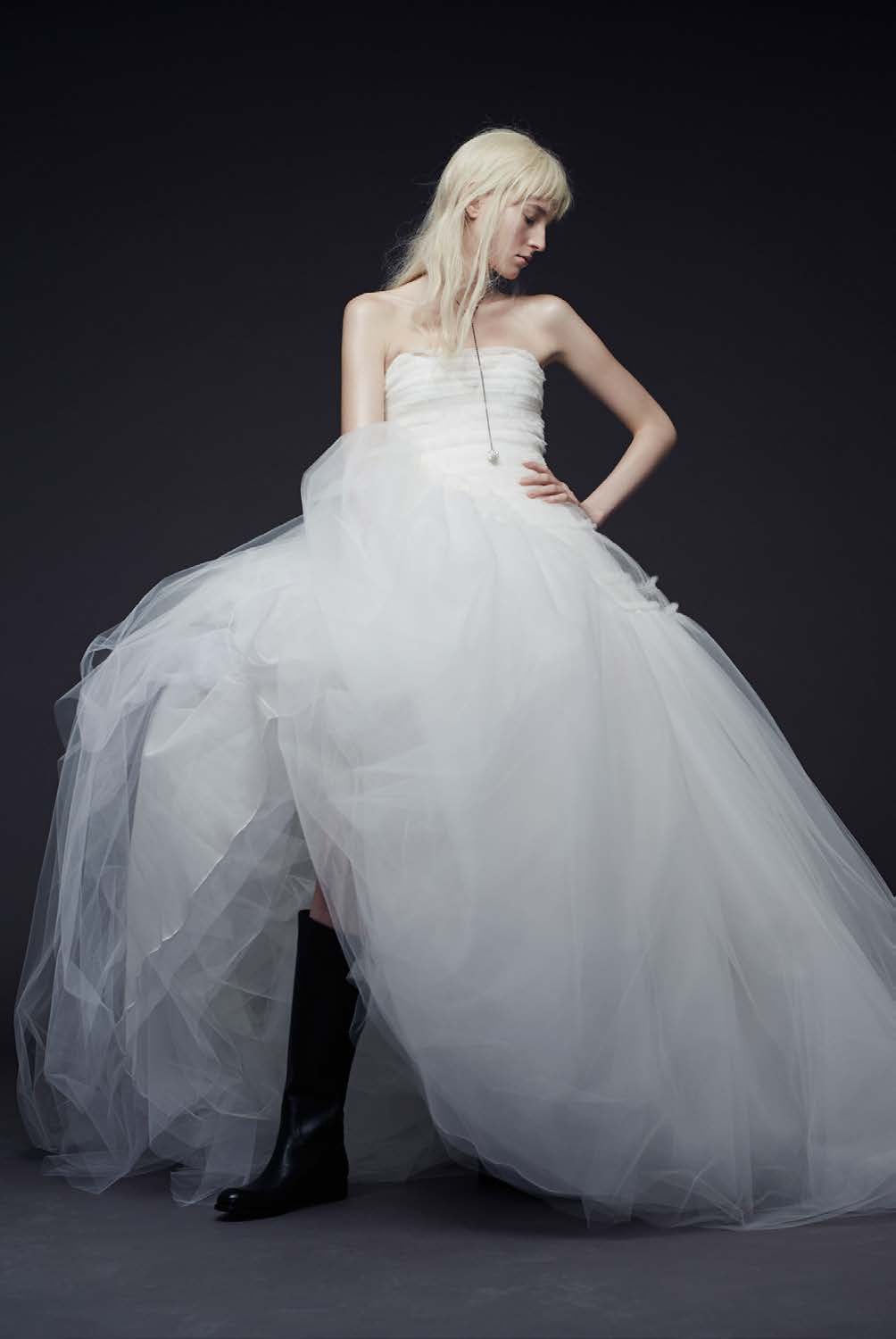 Lace, embroidery, crystals, pearls and metallic appliqués feature in the upcoming Fall season from Vera Wang, as the label's bridal collection continues on with the more relaxed looks from the current Spring/Summer 2015 line. Fabrics wise, the winter pieces sees drapes of organza, Chantilly lace and silk crepe.