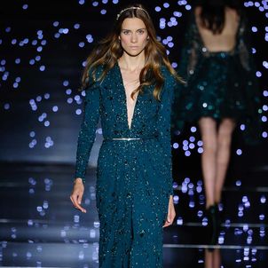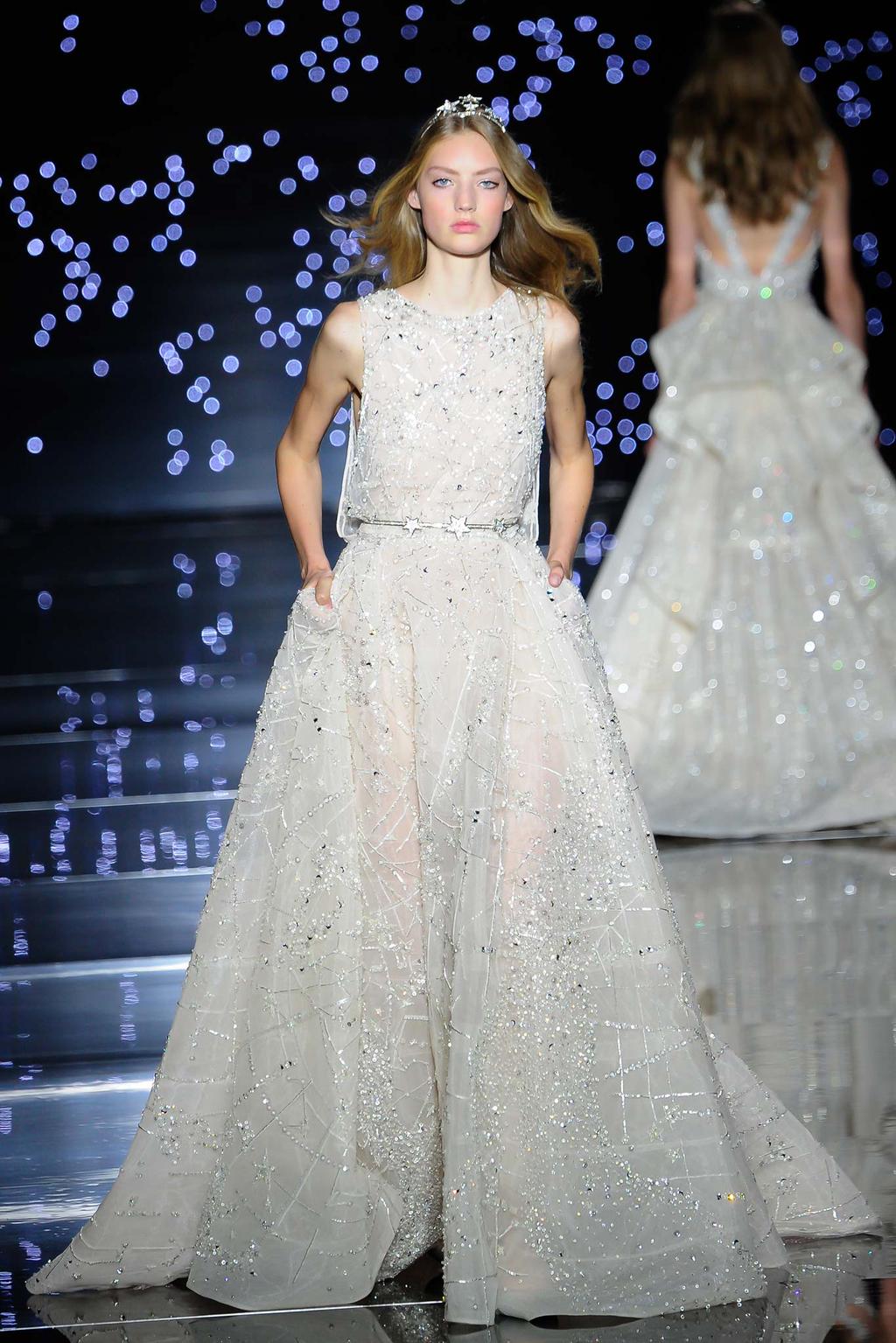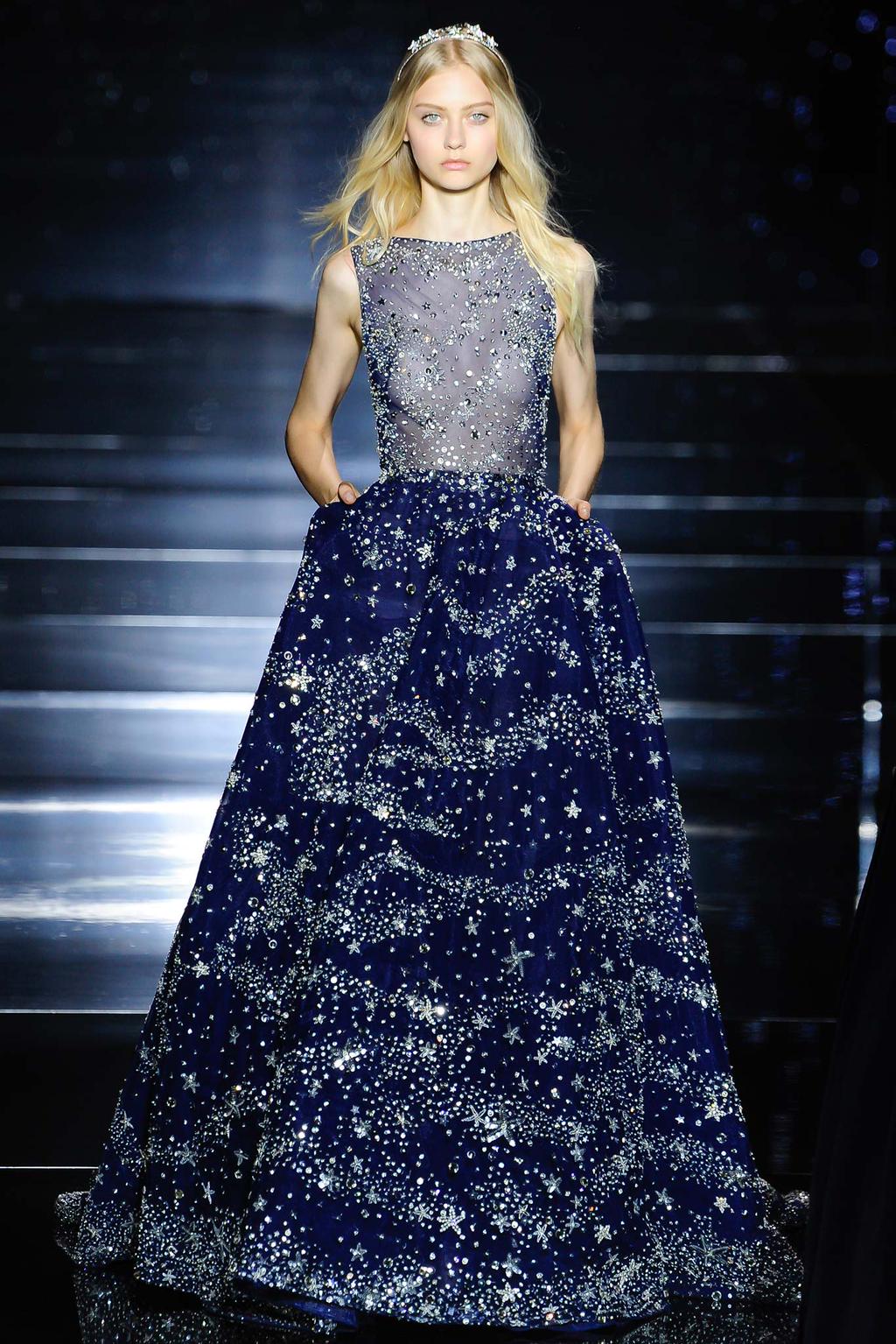 Zuhair Murad presented his Fall/Winter 2015/2016 collection at Haute Couture Week at the Orbe New York hall of the Palais de Tokyo on Thursday. Entitled "Star Catcher", the designs were inspired by both the galaxy as well as movie stars of the 1970s, and divided into four sub-themes, the "Celestial Bodies", "Lunar Sunlights", “Stellar Shades” and "Fatale Attraction".