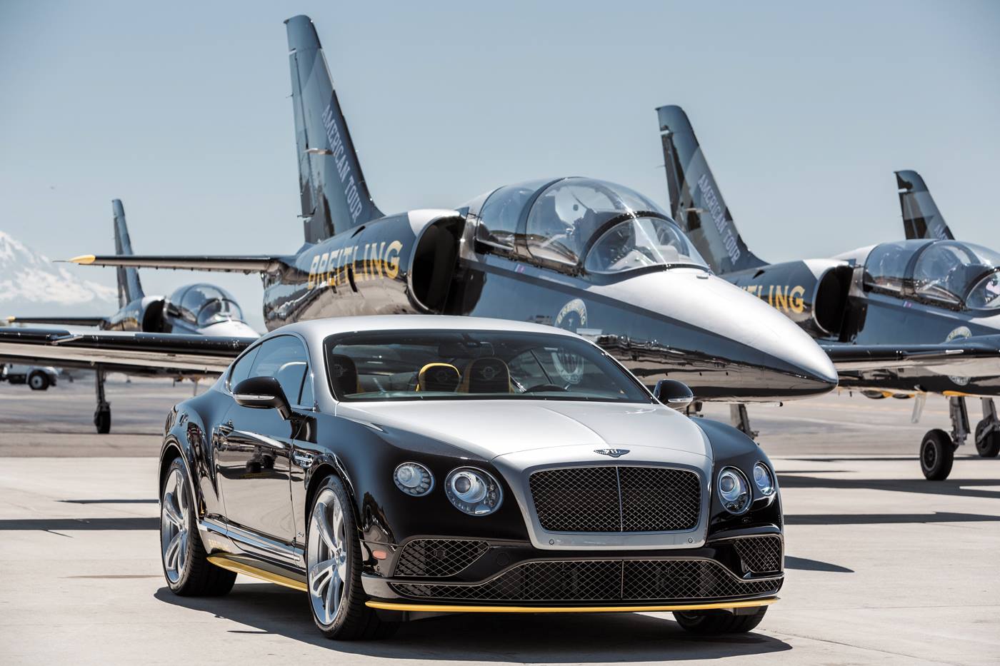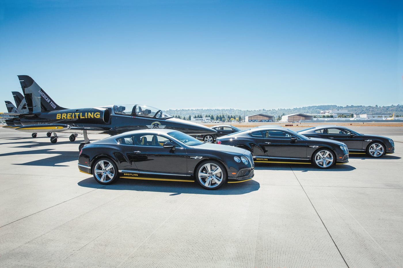 Breitling and Bentley have unveiled the Bentley Continental GT Speed Breitling Jet Team Series at the Seattle Boeing Seafair Airshow. Owners of these bespoke Mulliner vehicles were presented keys to their seven cars in front of the seven jets by the matching jet pilot, and also received the corresponding Chronomat 44 Breitling Jet Team Limited Edition numbered timepiece.