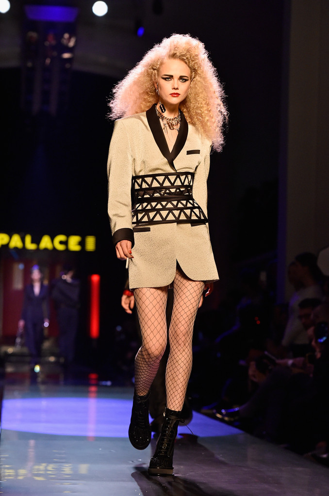 In homage to the 1980s cult Parisian nightclub the Palace, the collection was a blaringly loud celebration of all things festive and glam.