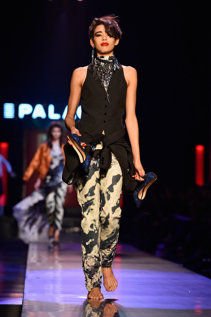 Fashion’s enfant terrible Jean Paul Gaultier dimmed the lights and upped the ante for his Spring 2016 couture show in Paris Wednesday.