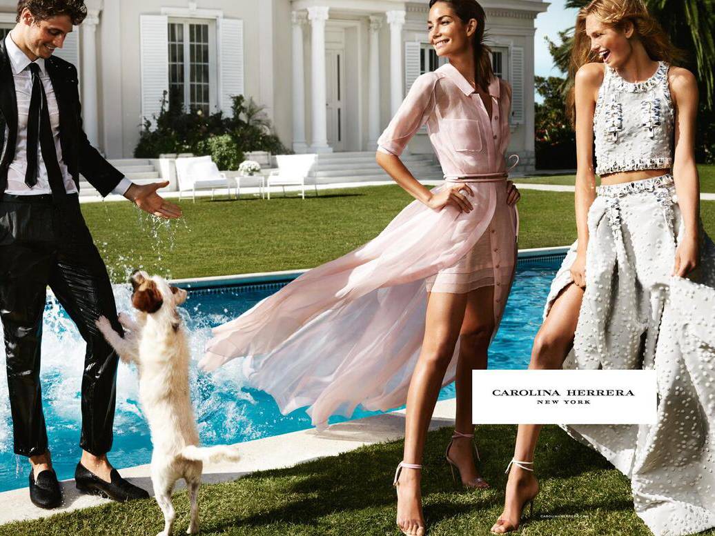 Shot poolside on the lawn of an estate in Spain overlooking the Mediterranean, the campaign mixes the Carolina Herrera New York and CH Carolina Herrera women’s and men’s apparel and accessories collections.