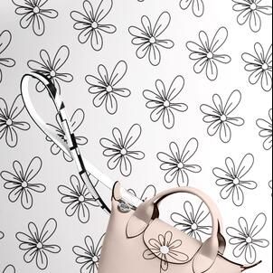 True to Longchamp’s attention to detail, the back of the flap features a black-on-white daisy print, while the removable leather shoulder strap has the daisy pattern on one side and the brilliant red associated with Chinese New Year on the other.