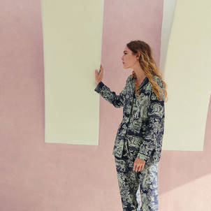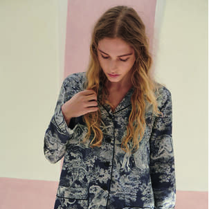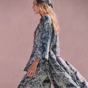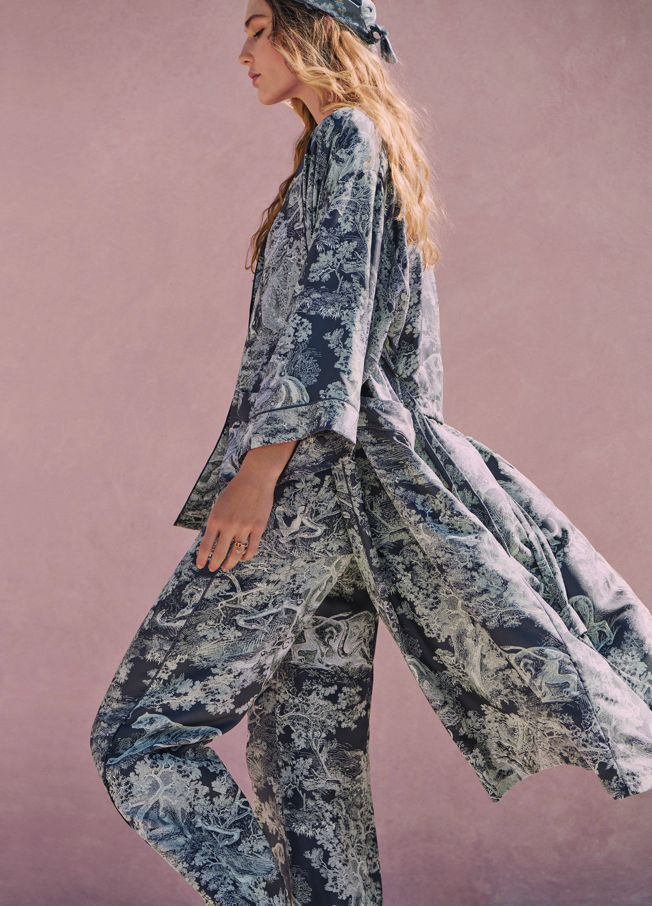 This season, a reverse toile de Jouy and Dior Oblique – two of the House’s iconic codes – appear on pajama sets, bathrobes and ponchos. Available in gray or blue*, two of Monsieur Dior’s favorite shades, these motifs also punctuate irresistible Mitzah scarves, D-Way mules and the essential Dior Book Tote. Nightwear may be worn by day, and delightfully fluid cuts liberate the body, celebrating movement and the singularity of every silhouette. A refined ode to comfort, available from today.