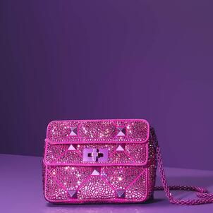 Crystal-embellished, studded and vibrant for the holidays. Valentino accessories in the Pink PP hue reflect the joys of the season.