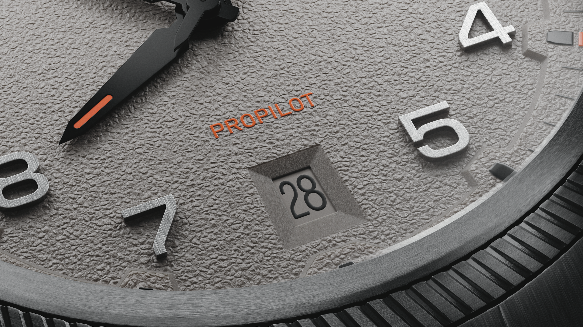 The story behind this timepiece is one of innovation rooted in purpose. The first pure aviation watch from the brand was the Big Crown Pointer Date of 1938 which was created when pilots asked for instruments they could use in flight. The ProPilot is the contemporary take on that classic design and retains the oversized crown and dial display while introducing a more aggressive and dynamic profile. The signature bezel fluting is angled to echo the turbines of modern jet engines.