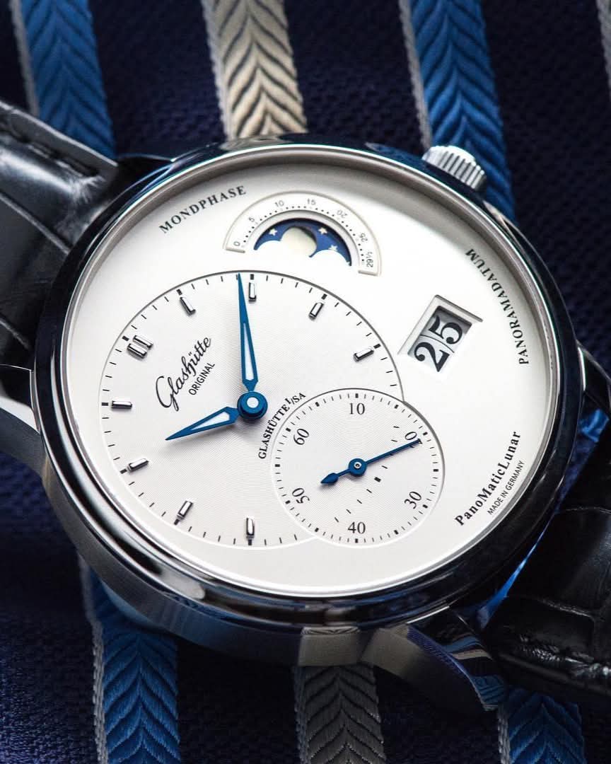 Glashütte Original has long understood that true beauty is a matter of mathematical grace. With the PanoMaticLunar, the dial is orchestrated according to the Golden Ratio, that ancient and celestial formula for perfect proportion. Rather than adhering to traditional centered displays, the timepiece embraces a deliberate asymmetry where the hours, minutes, and small seconds gracefully occupy the left hemisphere. This layout creates a serene visual balance that resonates with the natural world, allowing each complication to breathe within its own meticulously curated space.