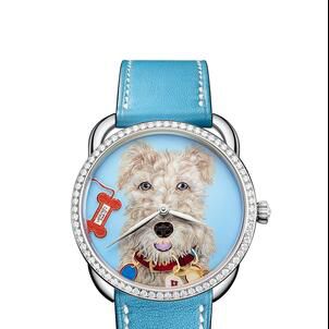 Originally designed by Henri d'Origny in 1978, the Arceau silhouette is celebrated for its asymmetrical lugs inspired by the equestrian world of stirrups. In this new bestiary inspired by artist Liz Stirling’s silk scarf designs, the maison presents three mischievous dogs named Orson, Amy, and Taco. Each portrait is a masterclass in horological artistry, featuring a unique leather bone at the center as a nod to the house's storied leatherworking heritage.