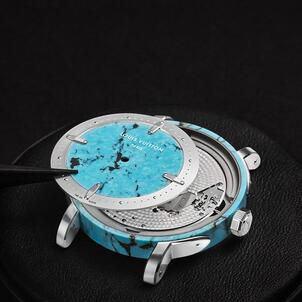This visionary timepiece was imagined by Artistic Director Matthieu Hegi, working in intimate harmony with the master artisans of La Fabrique du Temps Louis Vuitton. Together, they have managed to translate a raw, mineral power into a sophisticated horological statement that feels both daring and deeply refined. The seamless integration of the turquoise throughout the case middle is a technical feat that blurs the lines between jewelry and traditional watchmaking.