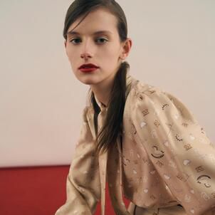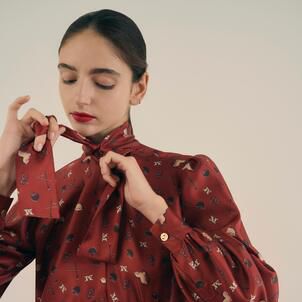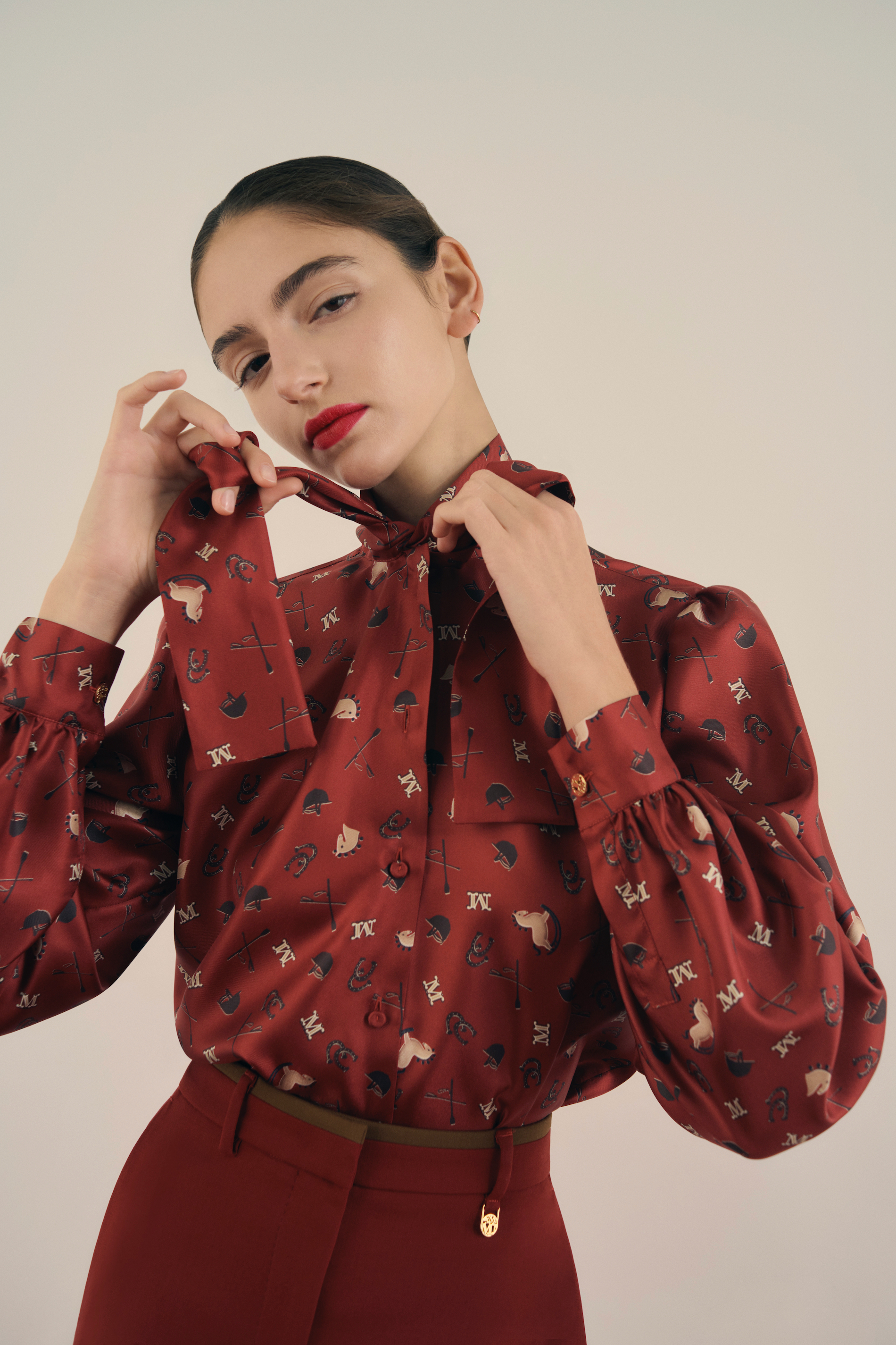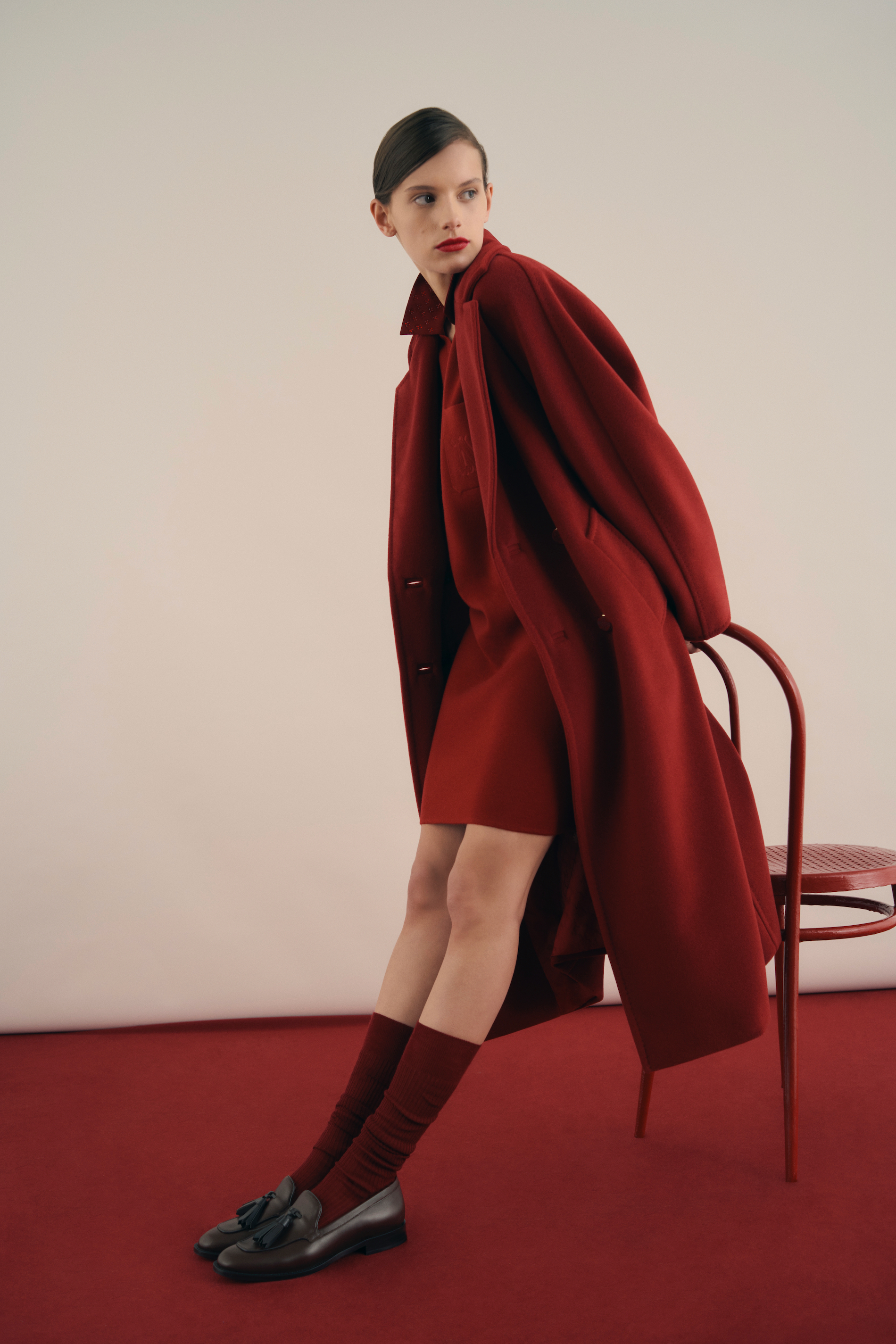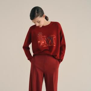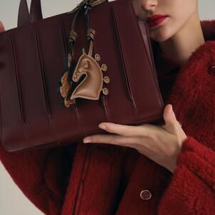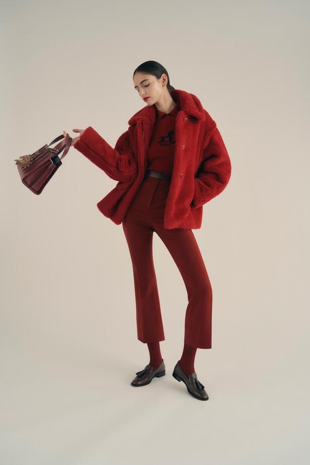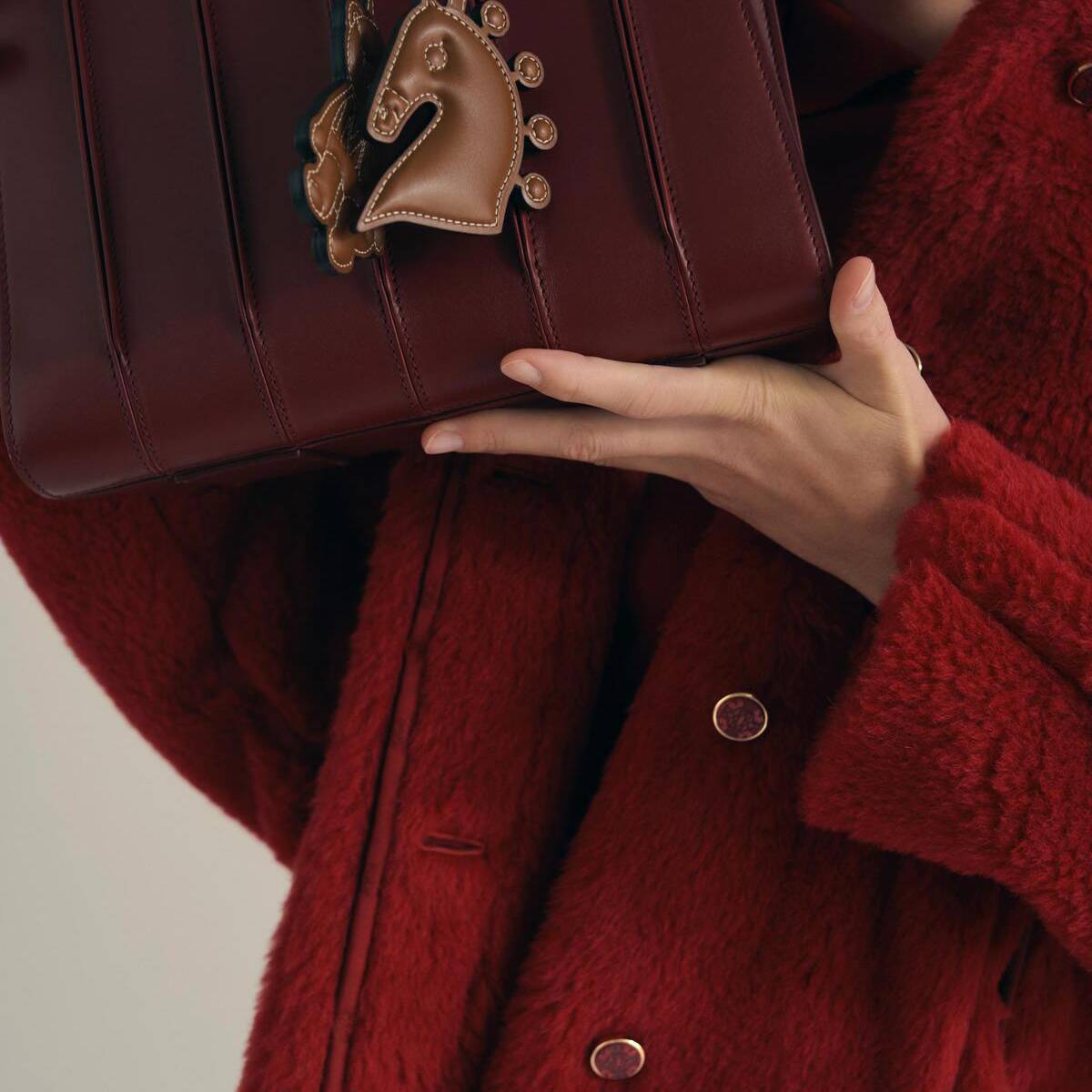 Iconic house silhouettes are reimagined within a palette of auspicious reds, rich deep browns, and soft creams. While the 101801 Icon Coat appears in a vibrant red, the collection also includes an elegant short version of the Teddy Bear Icon Coat. Many items throughout the capsule are finished with delicate equestrian motifs, including a stylized horse design that provides a whimsical yet polished touch to the garments.