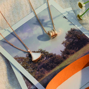 Architectural strength meets symbolic unity in the B.zero1 four band ring, presented in radiant yellow and white gold. For a touch of Roman inspiration, the Divas' Dream necklace in yellow gold pairs mother of pearl with pavé diamonds in a graceful geometric harmony.