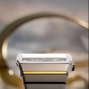 Presented in a futuristic matt plasma aesthetic, the timepiece radiates a luxurious pearlescent grey. The high-tech ceramic bezel and crown are paired with a velvety rubber strap that is as resilient as it is flexible, resistant to everything from UV light to various solvents. Underneath a cylindrical sapphire crystal, the R808 calibre automatic movement is laid bare like a three-dimensional maze. Anthracite-coated cogs and ruthenium-coloured plates create a captivating sense of depth while judicious touches of yellow gold on the hands and end pieces add a whisper of subtle luxury.