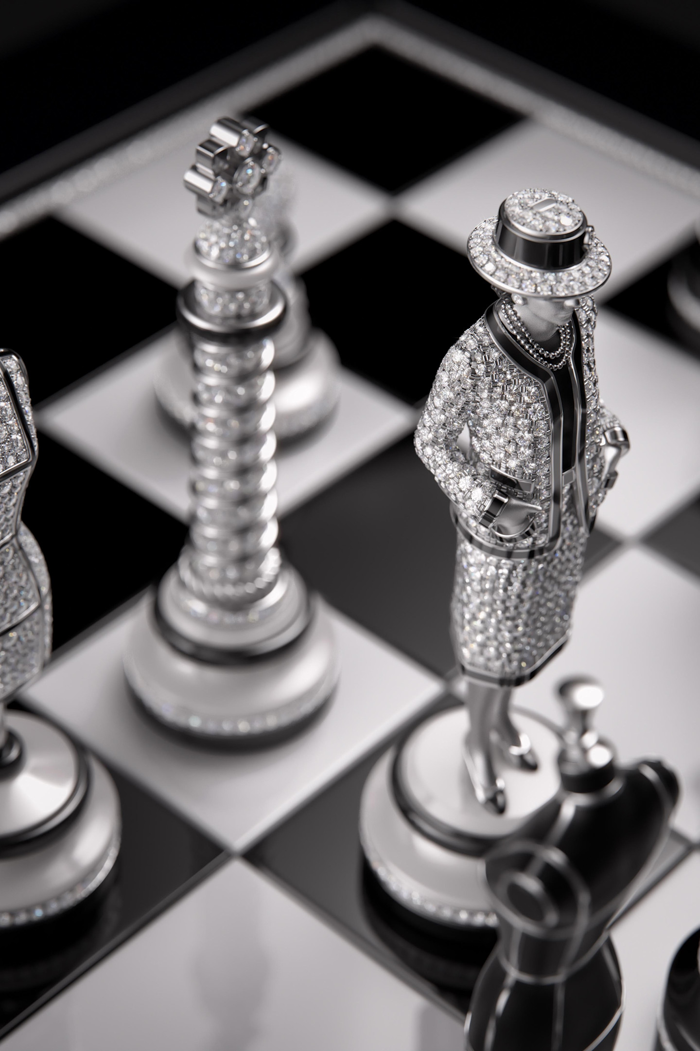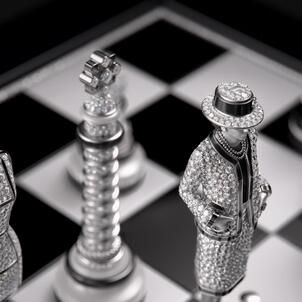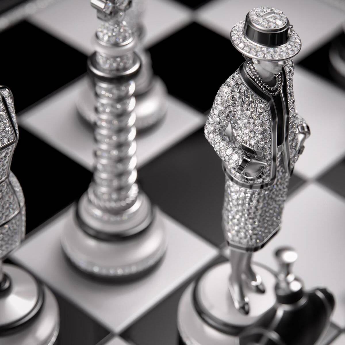 The black and white queens are fashioned after Gabrielle Chanel herself and hidden beneath their bases are exquisite timepieces. The victor can even wear the diamond set queen as a pendant by attaching it to a hidden onyx and white gold chain. From lions representing kings to couture busts as bishops, every detail is a masterclass in high horology and art.