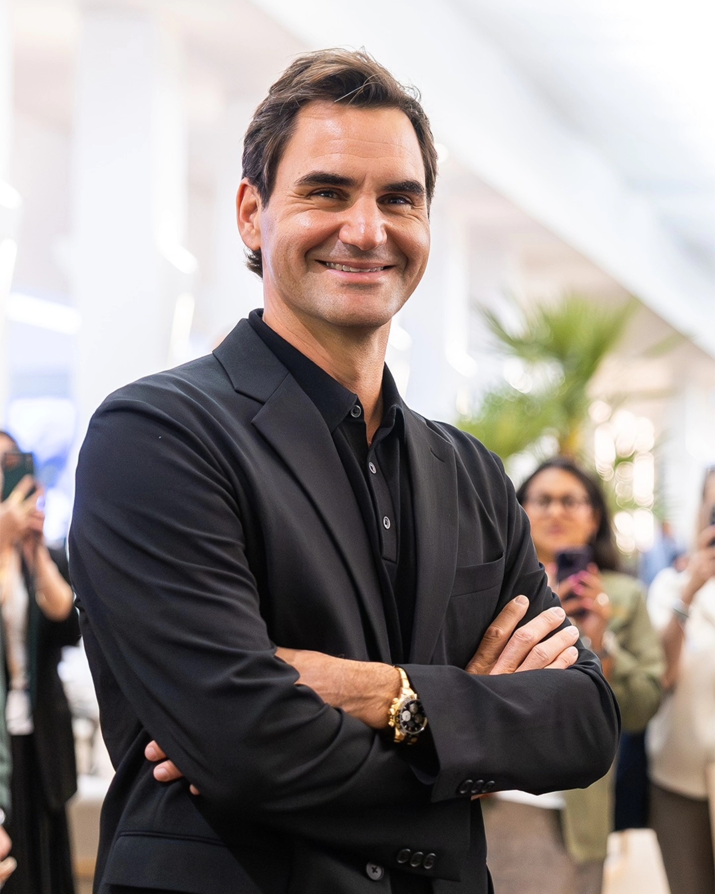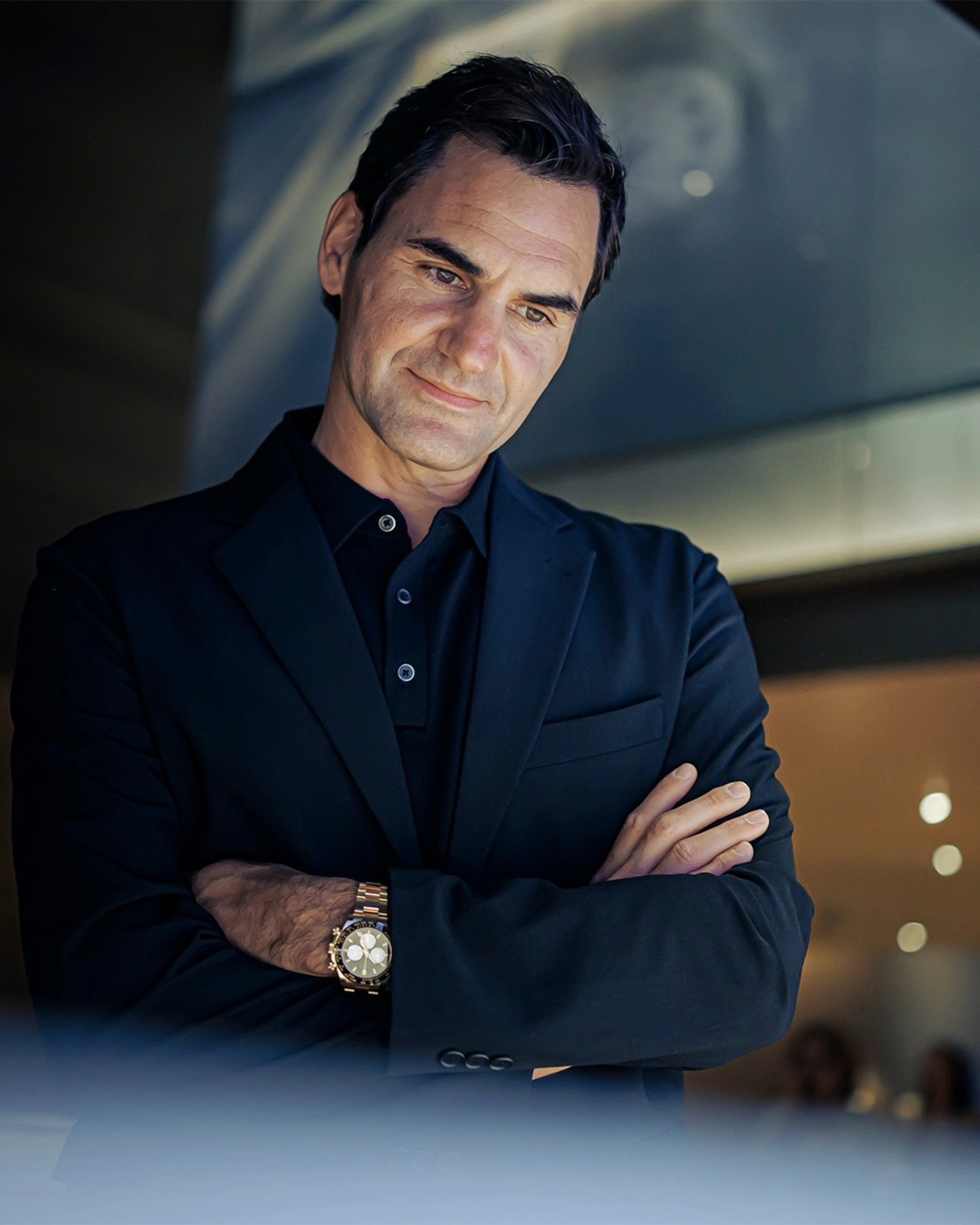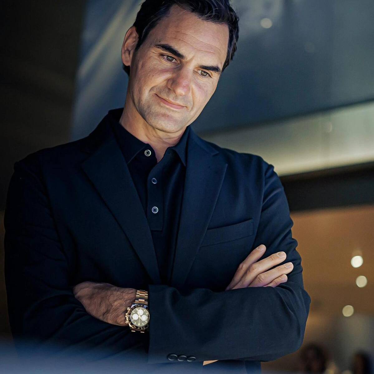 The choice is classic "Federer"—powerful yet refined. Much like his legendary backhand, the solid gold Daytona is a study in precision and high-performance luxury. Against his monochromatic ensemble, the watch served as the definitive center of gravity, proving that even in a room full of new releases, the King of Tennis still knows how to pick the winning classic.