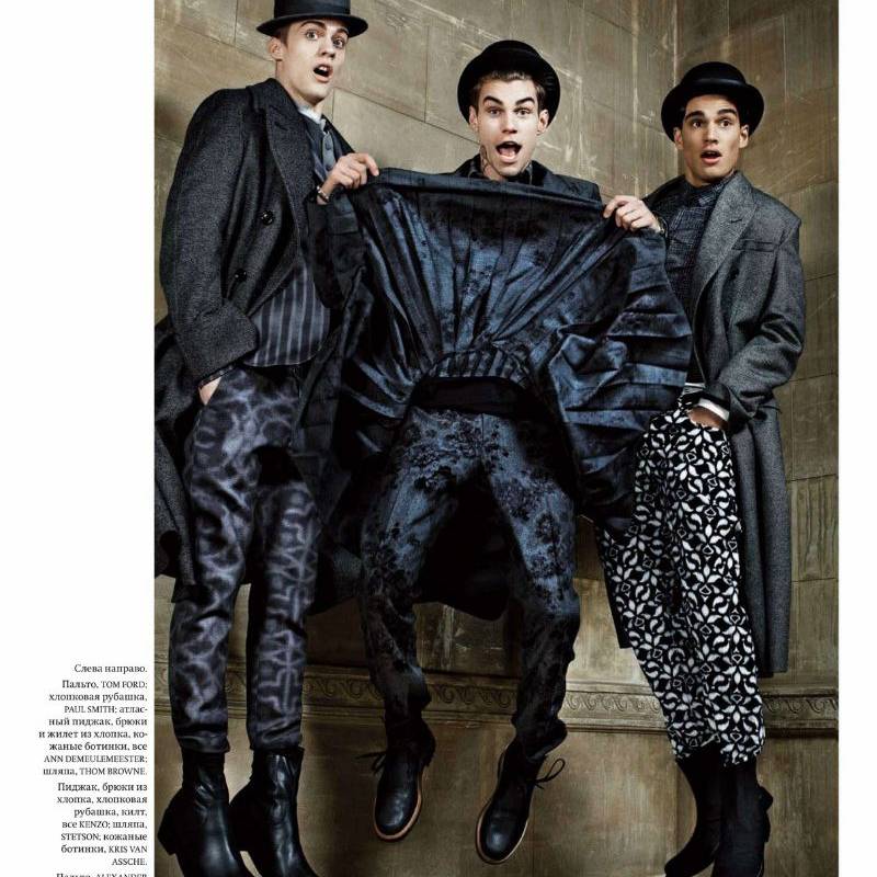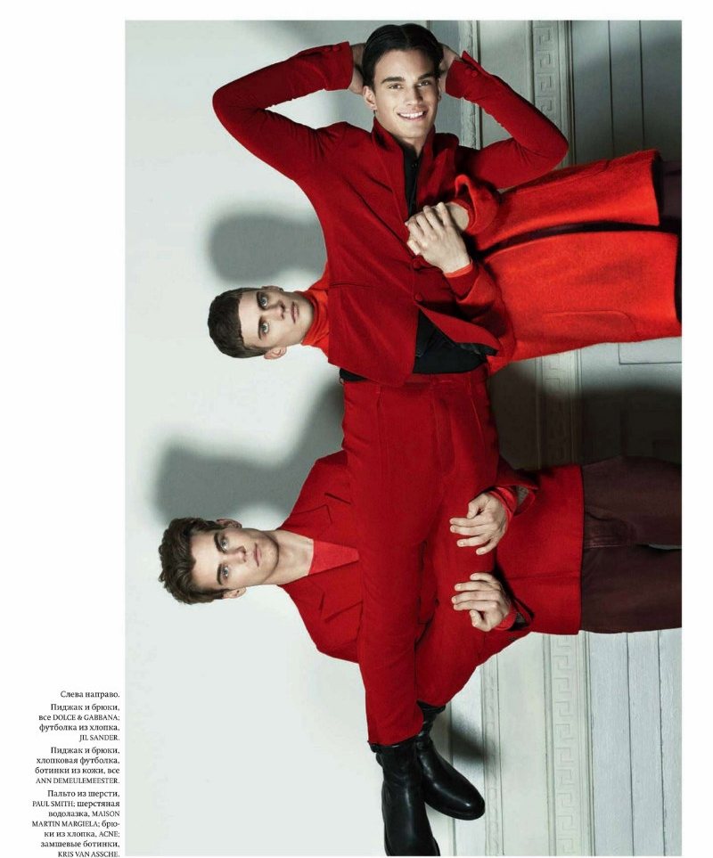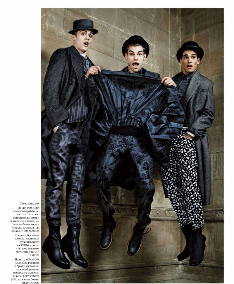 Featuring a host of labels including Phillip Lim, Kris Van Assche and Alexander McQueen, GQ Russia’s fall issue is packed with fashion from the season’s favorites. Enlisting AJ Abualrub, Mitch Norris, Pete Bolton and Tim Ruger, the energized foursome keeps it lighthearted with the occasional straight face in ensembles outfitted by Ekaterina Melnikova, while Doug Inglish captures the action.