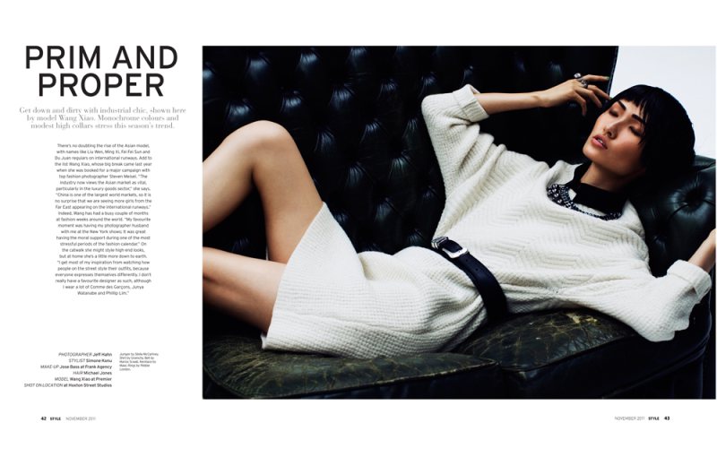 Model Wang Xiao photographed by Jeff Hahn for SCMP Style magazine's November edition. In the editorial titled "Prim & Proper"