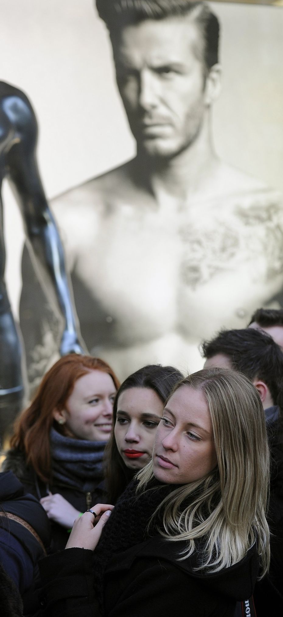 Dressed in a black leather jacket and jeans, David posed for his fans at the fast-fashion chain's Regent Street flagship store. The shop displayed a number of giant statues of the former England captain clad in a pair of trunk briefs from his bodywear range.