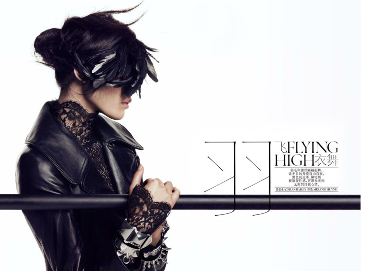 Photographer Lachlan Bailey shoots model Ming Xi in a variety of cool looks in black! Styled by Melanie Huynh, Ming is clothed in full splendor of feather, lace and leather in the fashion spread entitled "Flying High".