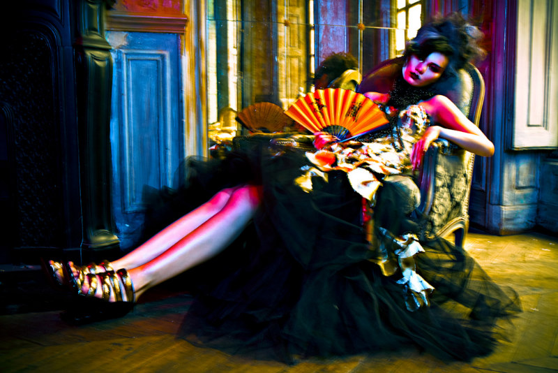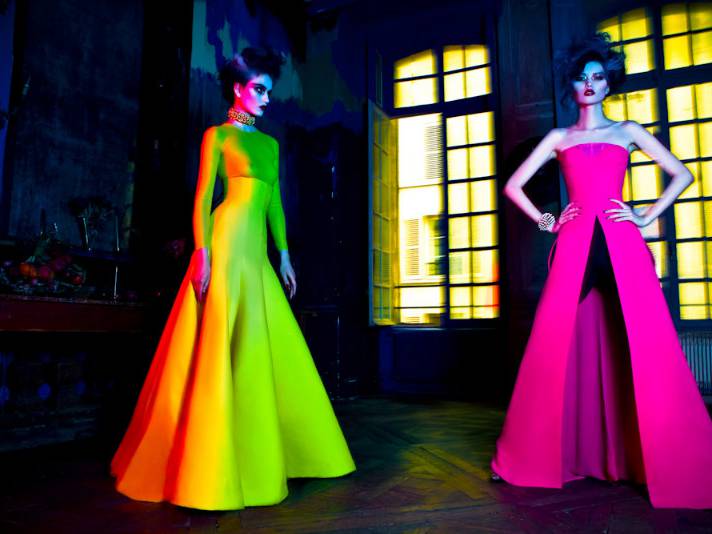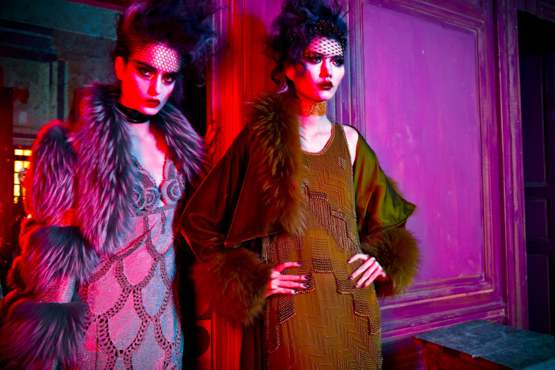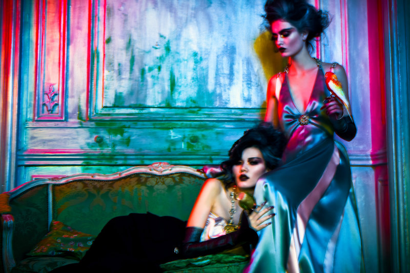 Photographer Michelle Du Xuan brings us this stunning editorial from the September issue of L’Officiel China, featuring models Pauline Van Der Cruysse (Elite Paris) and Zhu Lin (IMG Paris) in a kaleidoscopic time traveling fairytale. Styled by Hanae Uwajima, the girls don a marvelous wardrobe of couture pieces by Elie Saab, Dior, Chanel, Valentino, Versace and Alexis Mabille amongst others. Hair stylist Shuko Sumida and make up artist Min K create otherworldly looks with hauntingly baroque hair and vivid colors in these artful images.