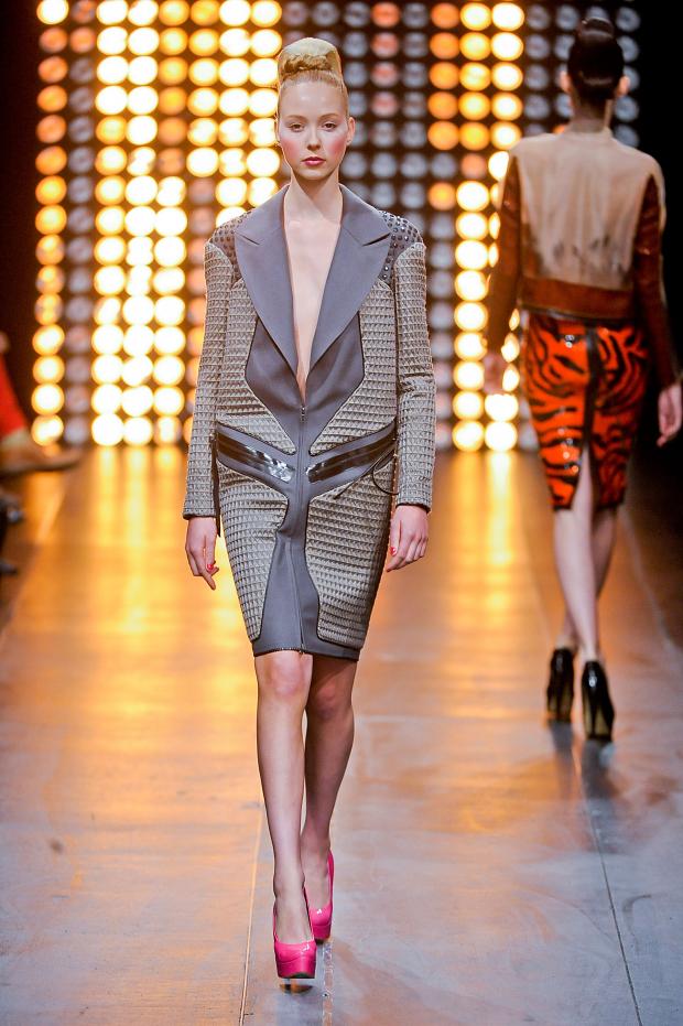 In a declaration of his love for the fine Art of Haute Couture creation, French designer Julien Fournié's latest Fall Winter 2012/2013 Haute Couture collection titled "Première Déclaration", is his fashion interpretation of the fantasy world of superheroes and their powers.
