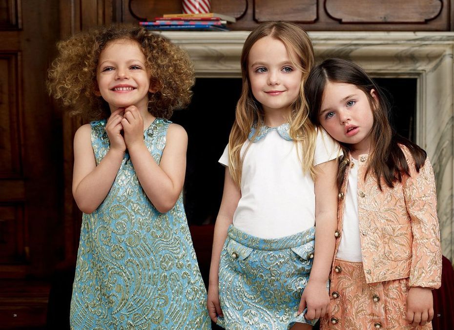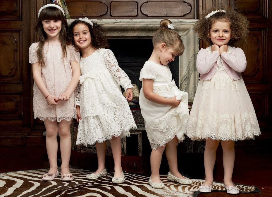 Lace, crochet, tweed, polka dots and the unmistakable animalier print are the distinctive elements of the childrenswear for girls, while three-pieces suits, bow ties, velvet jackets and silk scarves translate Dolce&Gabbana's traditional tailoring for the boys.