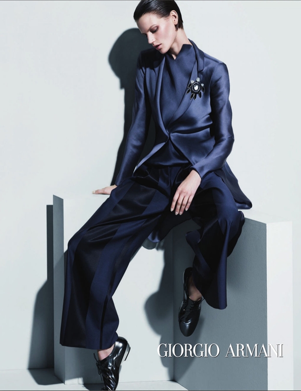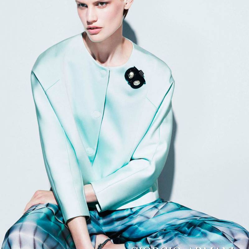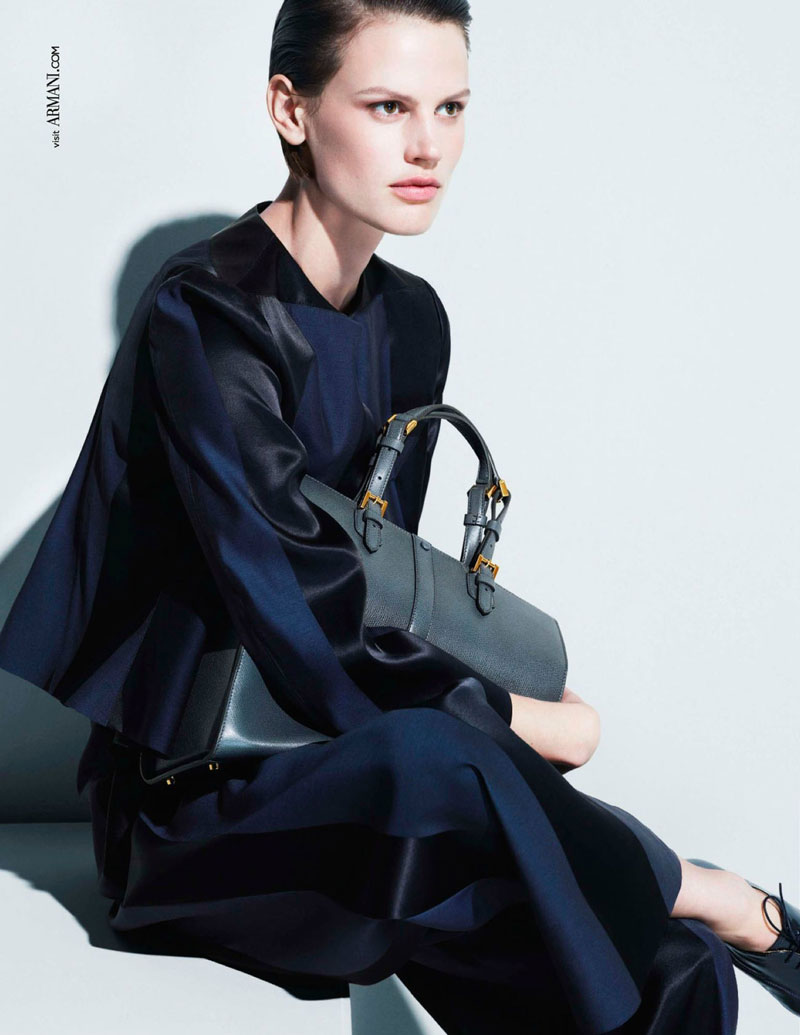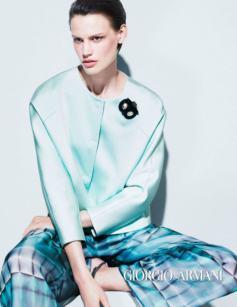 Giorgio Armani enlists another brunette for its spring 2013 campaign, replacing previous face Aymeline Valade with Dutch beauty Saskia de Brauw. The model wears tailored suiting and jackets in these slick studio images lensed by Mert & Marcus.