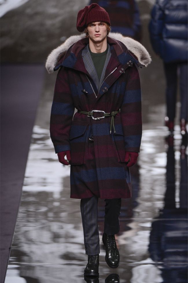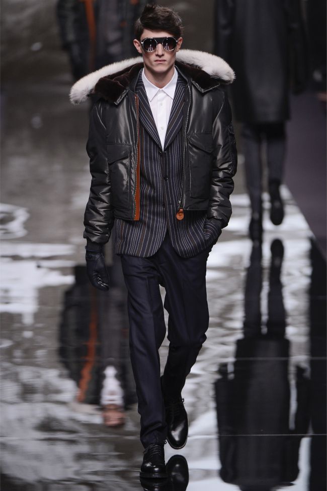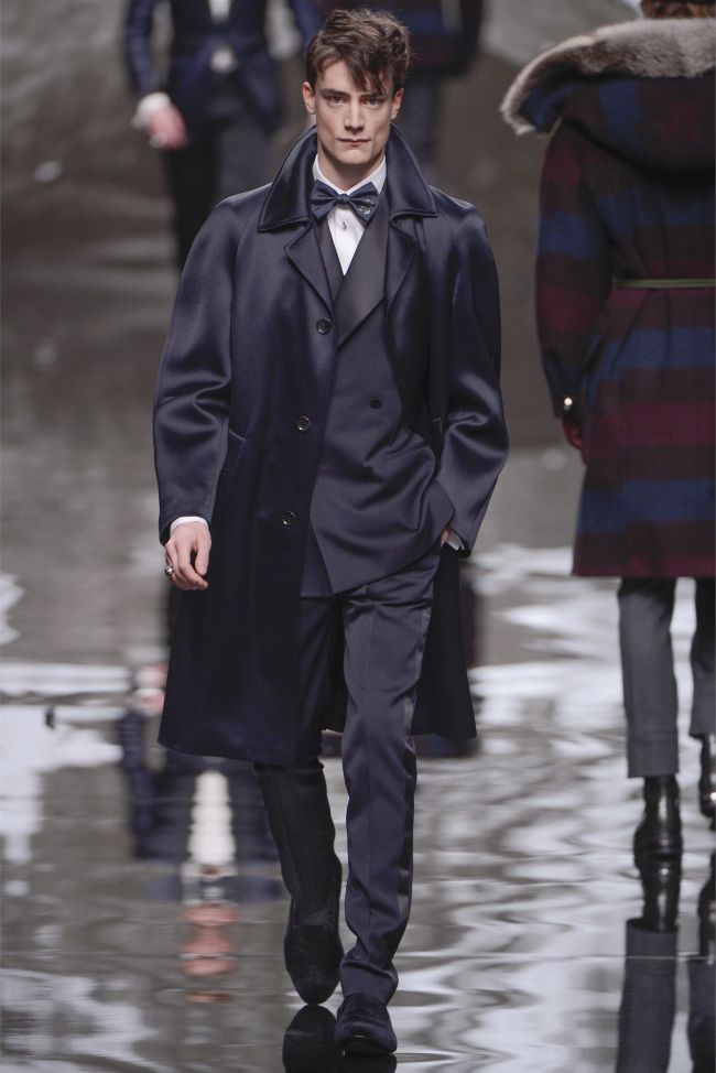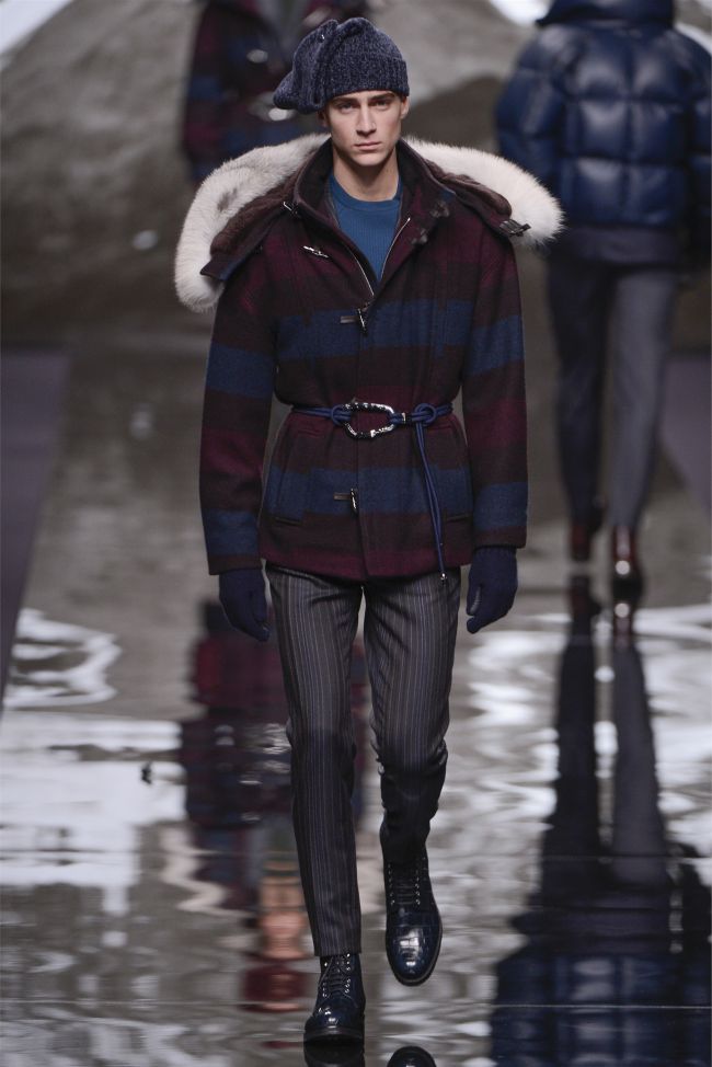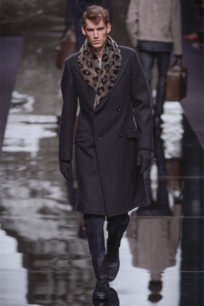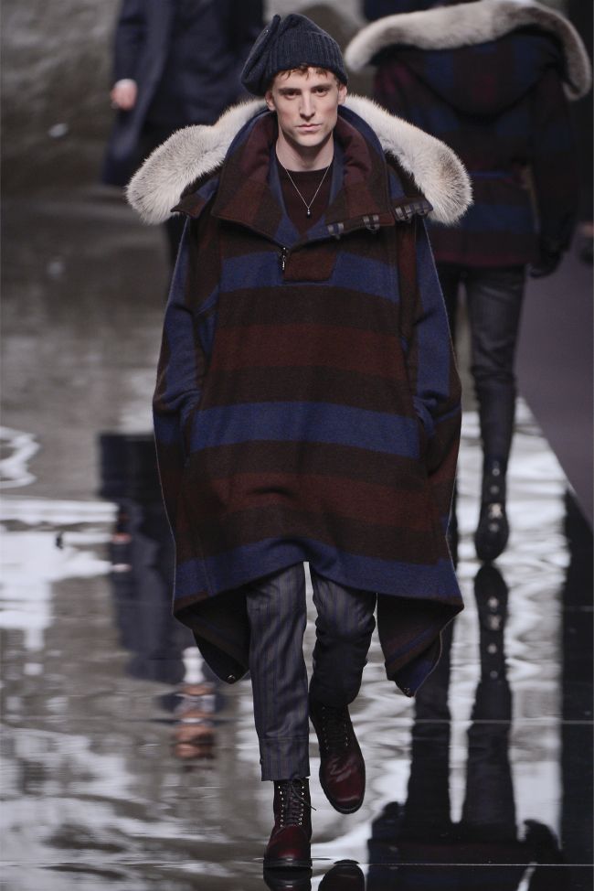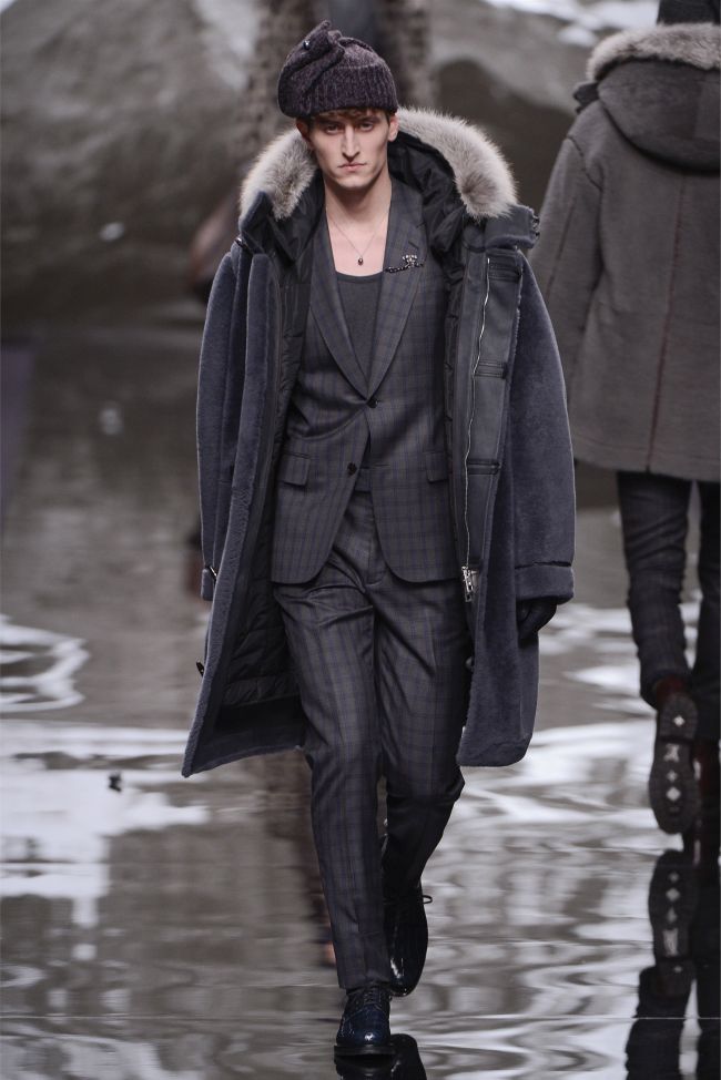 For the fall/winter 2013 season, Louis Vuitton sends their stylish traveler to the Kingdom of Bhutan in the Himalayas. Traveling to the Himalayas himself to do research for the collection, Louis Vuitton men’s studio and style director, Kim Jones explains that the “collection is often an actual journey…it comprises what you take with you and what you bring back both physically and mentally from the experience.” Getting the most out of his travels, Jones was inspired by the appearance of snow leopards and tigers, which definitely played a hand in the collection’s signature print motif. Tackling the history of mountaineering, rugged silhouettes are mixed with the heritage of the French house for luxurious outerwear that showcases a playful masculine nature. Accented with furs and leathers, the core pieces reinforce the collection’s theme of adventure. Furthermore, borrowing from the Bhutanese, mixed patterns are inspired while blankets woven from cashmere are translated into ponchos. Rounded out by Louis Vuitton’s esteemed handiwork in the accessories department, the overall experience is a rich one.