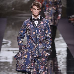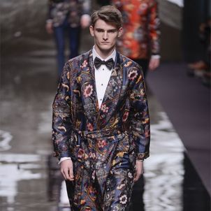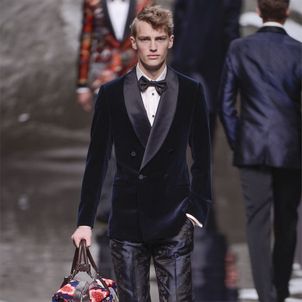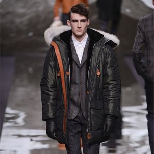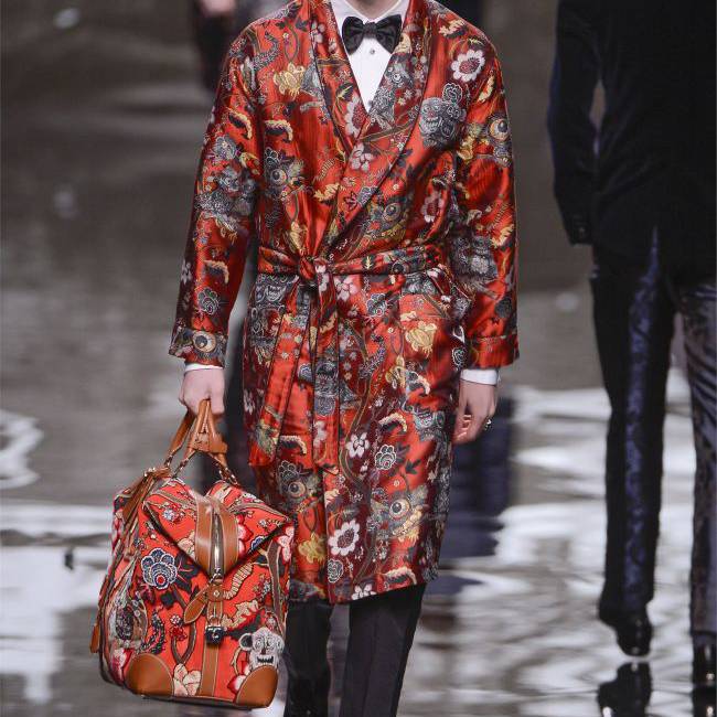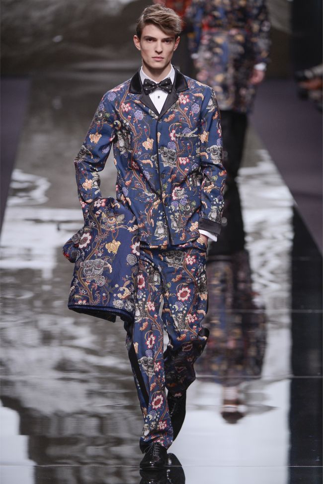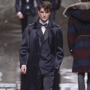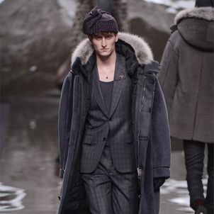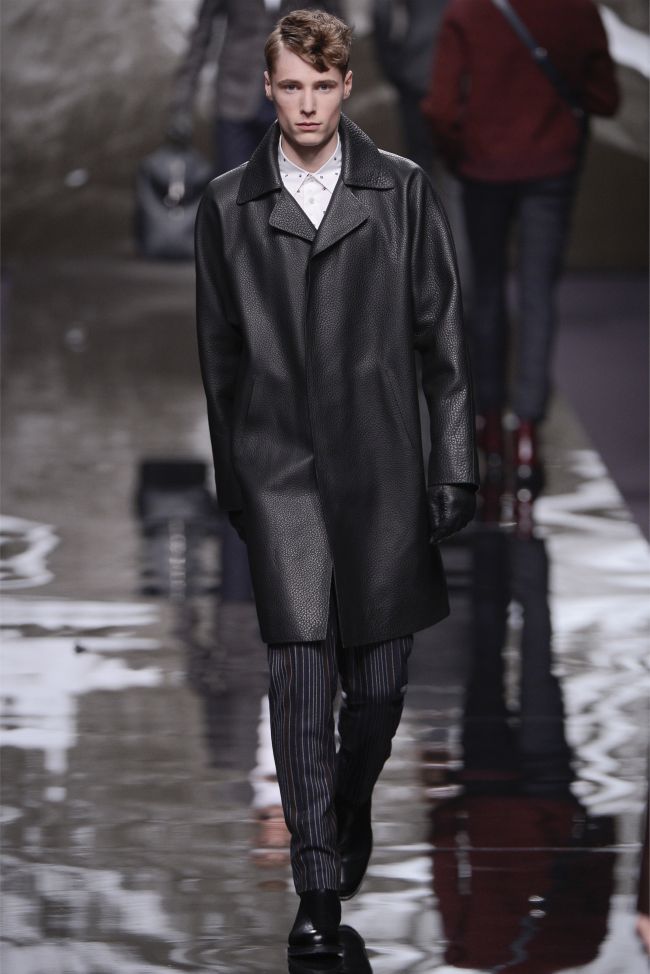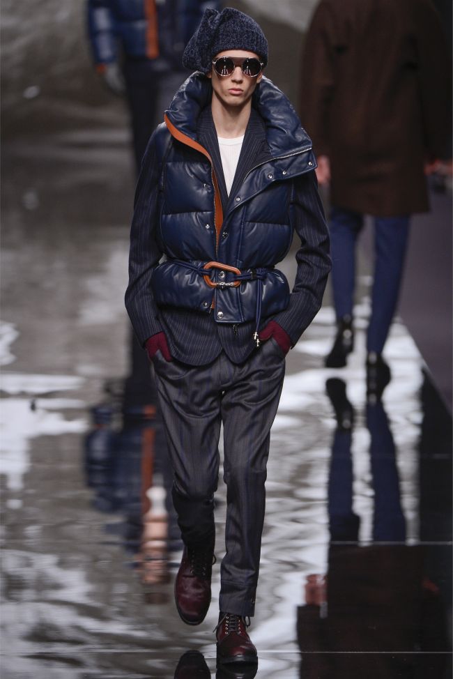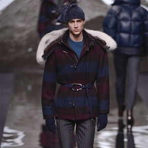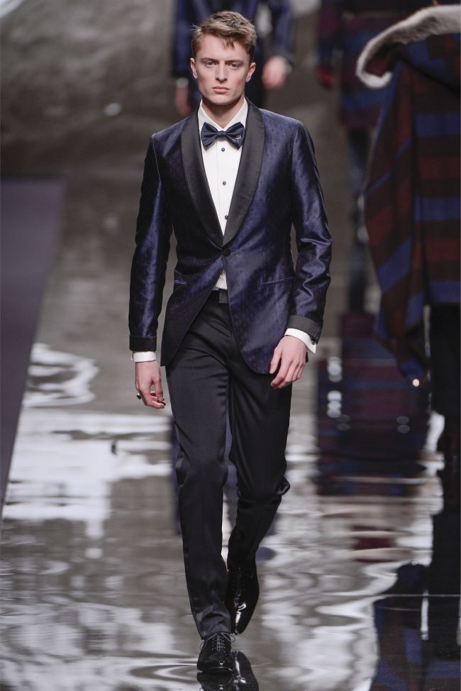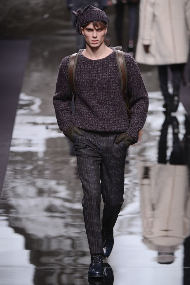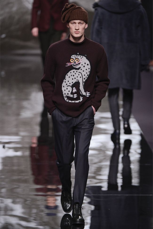 For the fall/winter 2013 season, Louis Vuitton sends their stylish traveler to the Kingdom of Bhutan in the Himalayas. Traveling to the Himalayas himself to do research for the collection, Louis Vuitton men’s studio and style director, Kim Jones explains that the “collection is often an actual journey…it comprises what you take with you and what you bring back both physically and mentally from the experience.” Getting the most out of his travels, Jones was inspired by the appearance of snow leopards and tigers, which definitely played a hand in the collection’s signature print motif. Tackling the history of mountaineering, rugged silhouettes are mixed with the heritage of the French house for luxurious outerwear that showcases a playful masculine nature. Accented with furs and leathers, the core pieces reinforce the collection’s theme of adventure. Furthermore, borrowing from the Bhutanese, mixed patterns are inspired while blankets woven from cashmere are translated into ponchos. Rounded out by Louis Vuitton’s esteemed handiwork in the accessories department, the overall experience is a rich one.