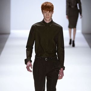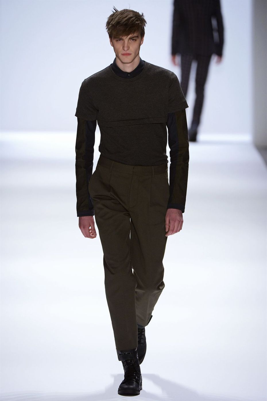 Chinese American designer Richard Chai showed a subdued collection that made ample use of its minimalism. Plaids were chic while a slock overcoat had a sexy,subversive feel. In all, the collection felt more adult. which could have been helped by Chai's collaboration with the stylist Tom Van Dorpe.