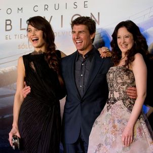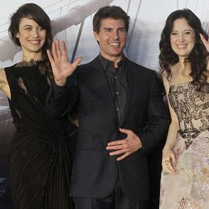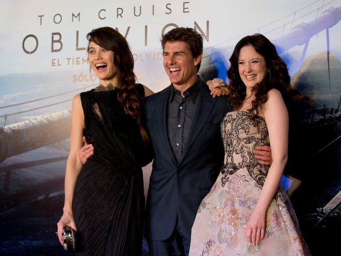 The always well-tailored Cruise wore a navy blue suit, as well as some arm candy in the form of his gorgeous co-stars Andrea Riseborough and Olga Kurylenko.