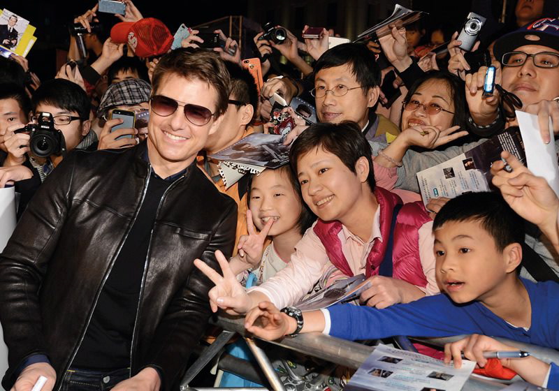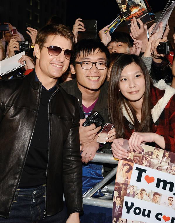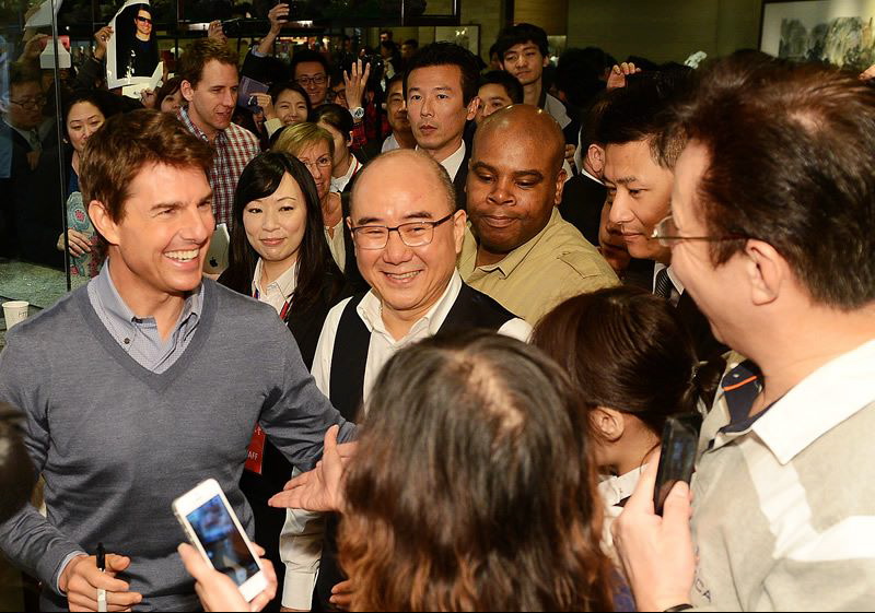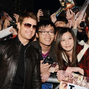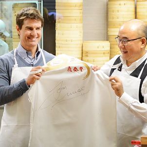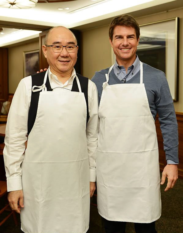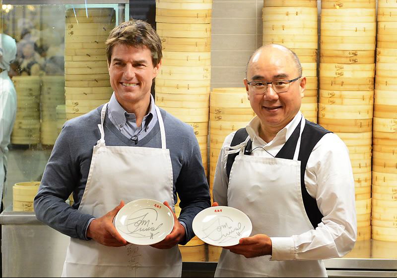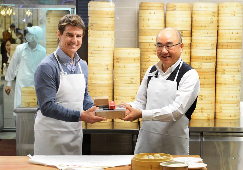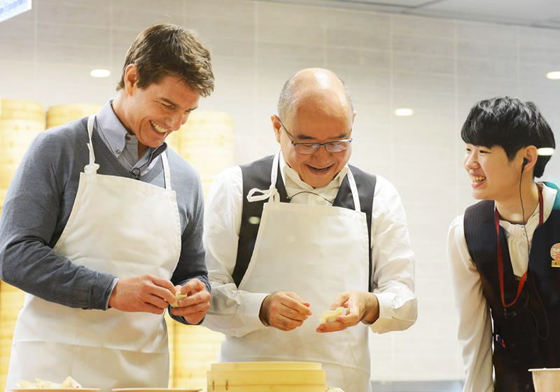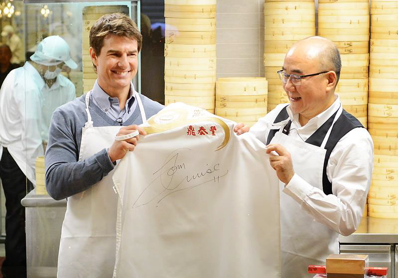 Tom Cruise visited 1 Michelin star restaurant, Din Tai Fung (鼎泰豐), where he learned how to make dumplings (Xiaolongbao - 小籠包) with Chef Yang Jihua. Accompanied by co-star Olga Kurylenko and director Joseph Kosinski, Cruise spent a full two hours meeting with fans, shaking hands and signing autographs during the premiere.