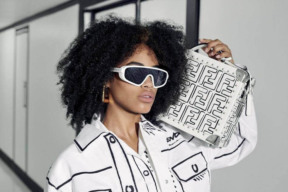 The same aesthetic also extends to FENDI's iconic accessories, from the Peekaboo and Baguette iconic bags, shown in a super soft padded leather, and the new FENDI Roma shopper, to the signature Colibrì sling-backs and FF Fluid sock sneakers crafted from polished leather.