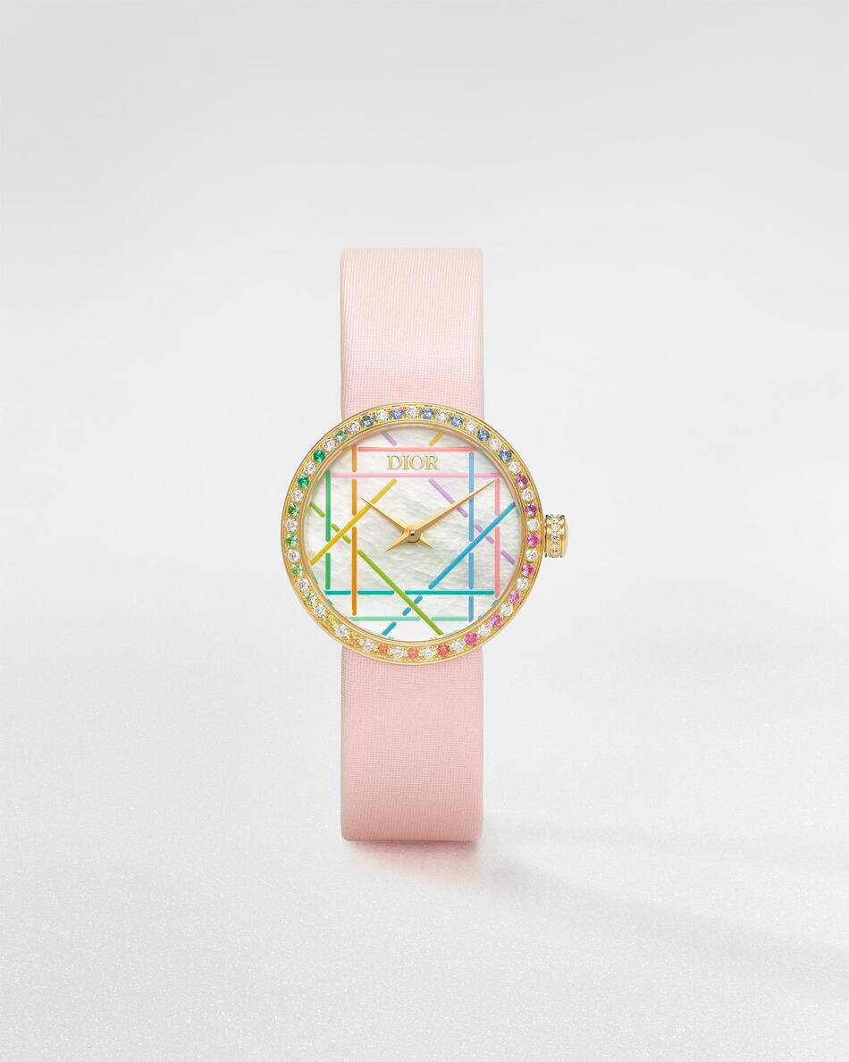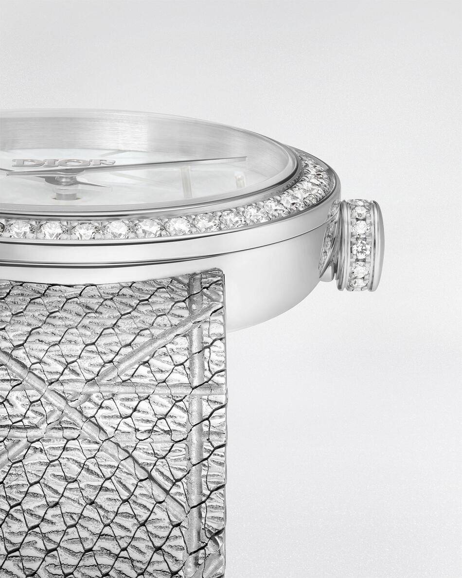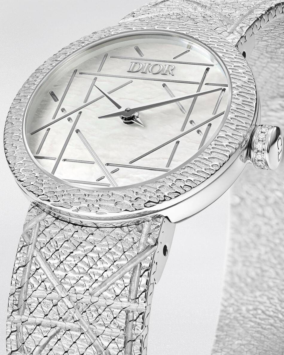 This emblematic timepiece is famously adorned with the geometric lines of the Cannage pattern. This signature code has been a fundamental part of the House’s visual language since the very first fashion show in 1947. Now, the La D My Dior undergoes a sophisticated refresh that brings this iconic geometry to life in a new, abstract form.