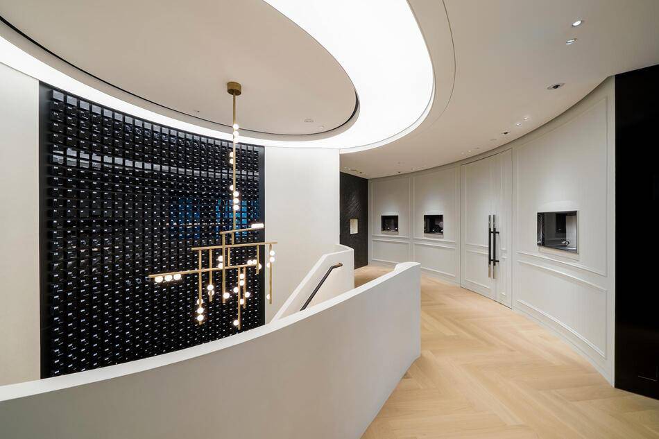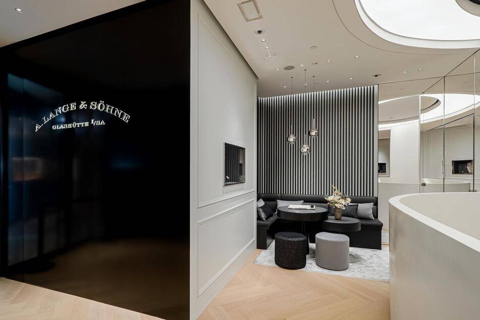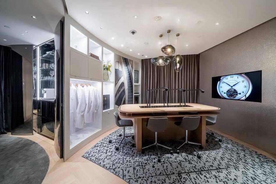 A sweeping staircase leads guests to the upper floor where the boutique transitions into a luxurious private area. This exclusive space comprises two sales salons and a lounge alongside a presentation and theatre section. Surrounded by elegant bookcases and objets d'art, this level is designed to inspire conversation and discovery. Wilhelm Schmid, the CEO of A. Lange & Söhne, notes that this location represents a milestone in their retail journey and beautifully articulates their dedication to constant innovation.